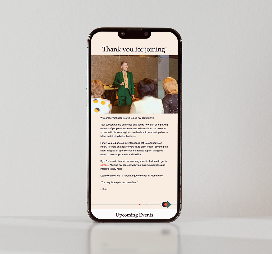Helen’s flagship programme — The Sponsorship Edge — is designed for professionals who want to become more “sponsorship savvy” and learn with peers across organisations.